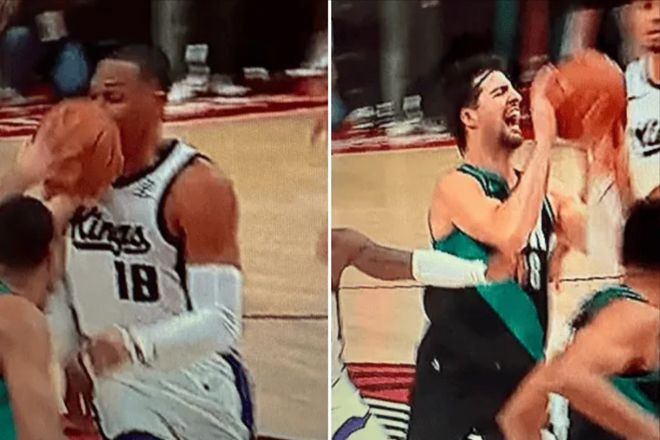 從慢動(dòng)作來看,阿夫迪亞高舉高打,用球砸到了威少的面部,后者順勢被彈開。所以當(dāng)時(shí)很多人覺得,這球大概率是進(jìn)攻犯規(guī),威少要立功了!沒想到,裁判吹罰威少防守犯規(guī),阿夫迪亞罰球!結(jié)果大家都知道了,阿夫迪亞靠著罰球反絕殺了國王隊(duì)。那一刻,德羅贊和威少,以及國王全隊(duì)都是一臉不可置信的狀態(tài)。甚至在比賽結(jié)束后,罰球絕殺的阿夫迪亞在接受采訪時(shí)都表示:“我制造了對(duì)抗,但沒想到裁判會(huì)在那個(gè)時(shí)候響哨?!辟惡?,外界都表示這是誤判,說威少被冤枉了。而今天裁判報(bào)告出爐,才發(fā)現(xiàn)裁判仍然覺得比賽最后一個(gè)回合威少犯規(guī),阿夫迪亞的罰球沒問題。