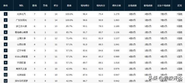 CBA常規(guī)賽第七輪繼續(xù)開打,上演7場(chǎng)對(duì)決當(dāng)中,廣東和北京收獲7連勝,競(jìng)爭(zhēng)榜首的位置激烈,山西,新疆均遭到連敗,寧波,吉林均勝率超過了50%,四川男籃則是成為目前唯一0勝的球隊(duì)。