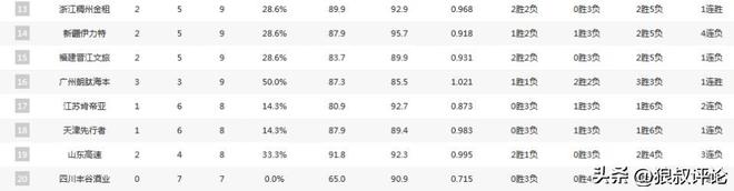 此外,值得一提的是上個(gè)賽季無緣季后賽的寧波,天津均取得4勝3負(fù)的戰(zhàn)績(jī),而重建當(dāng)中的廣州更是達(dá)到了3勝3負(fù),反觀山東遭到2勝4負(fù)的艱難開局。
